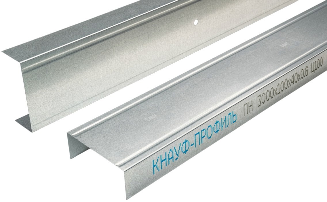 • Направляющий профиль (ПН) — служит для крепления стоечного или потолочного профиля к стене или потолку. Имеет П-образную форму и обеспечивает фиксацию каркаса по периметру.