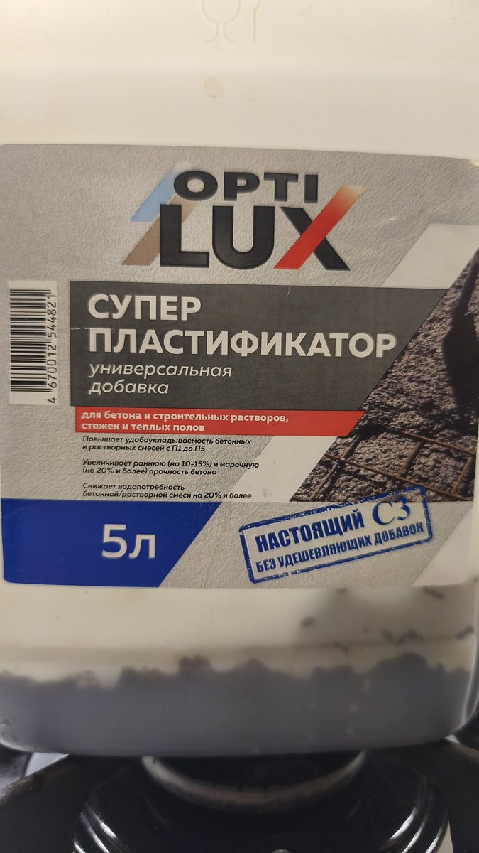- Суперпластификатор Оптилюкс для бетонов и строительных растворов 6кг/5л канистра П/Э