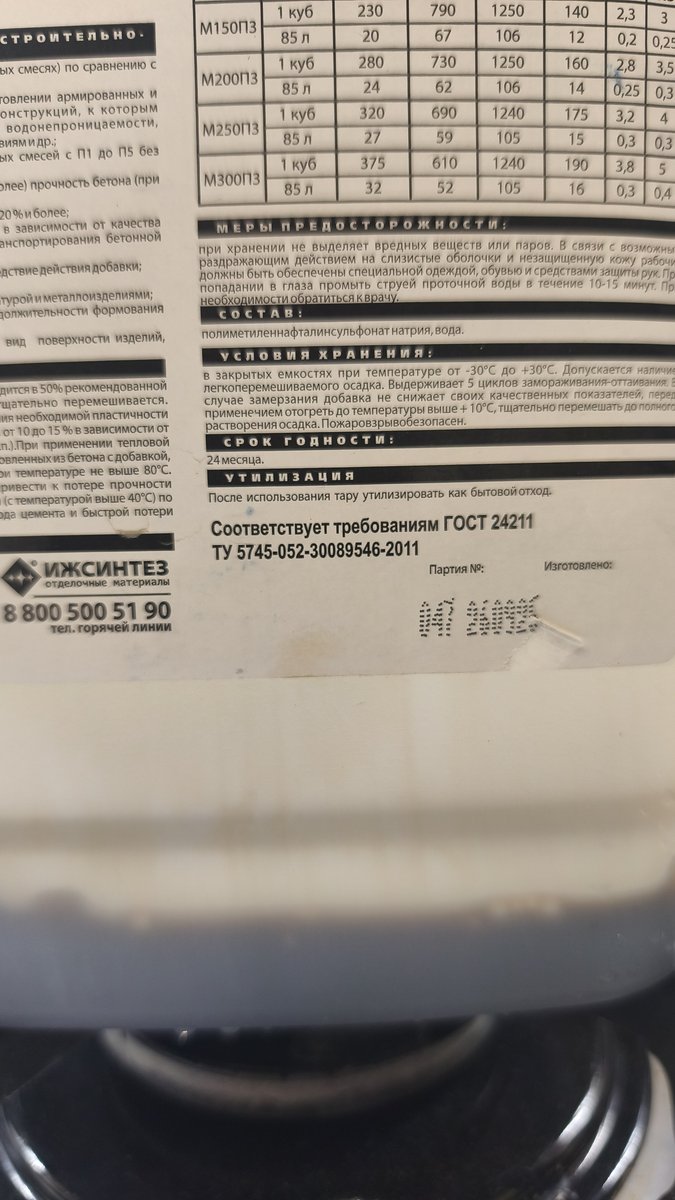 увеличивает раннюю (на 10-25%) и марочную (на 20% и более) прочность бетона (при неизменной удобоукладываемости)