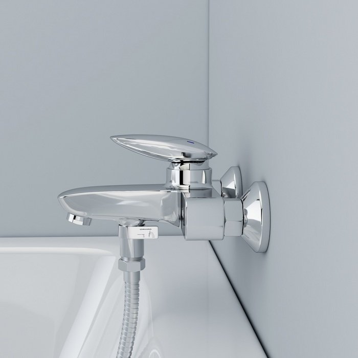 Для тех, кто предпочитает универсальный излив мы предлагаем лаконичный смеситель для ванны и душа.