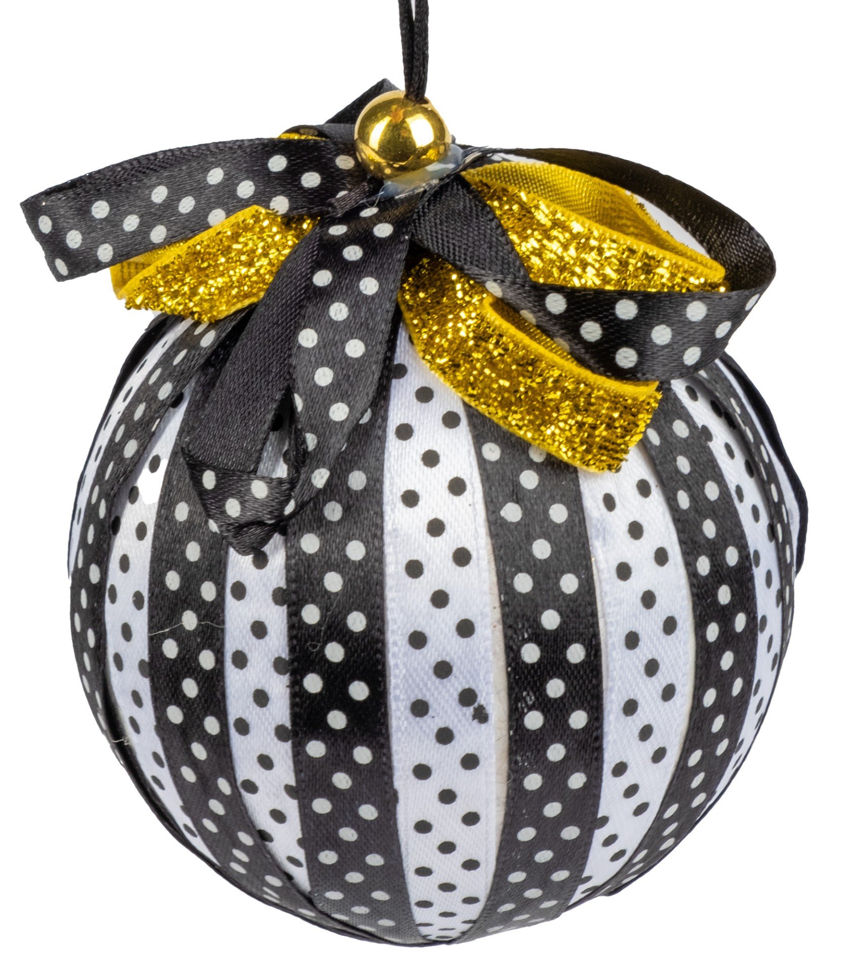 Чтобы декорировать елочку модно и элегантно, подвески на ней должны сочетаться между собой и с убранством комнаты. Важно не просто развесить свой "клад", но и хорошо продумать, где поместить ту или иную деталь. Один из самых простых способов решения этой задачи - выбрать елочные шарики одной цветовой гаммы. В этом вам поможет шар в черно-белом оттенке , который сделает украшение вашей новогодней елки еще более привлекательным.