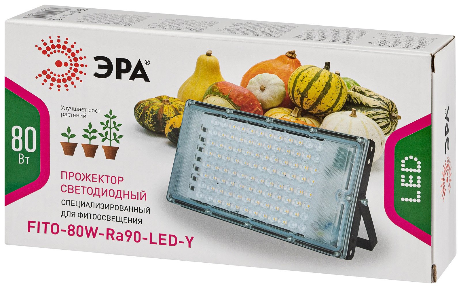 - Фитопрожектор для растений светодиодный ЭРА FITO-80W-Ra90-LED-Y полного спектра