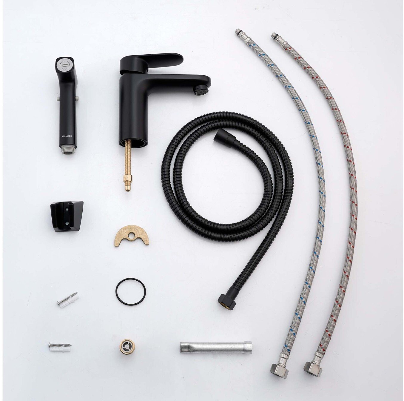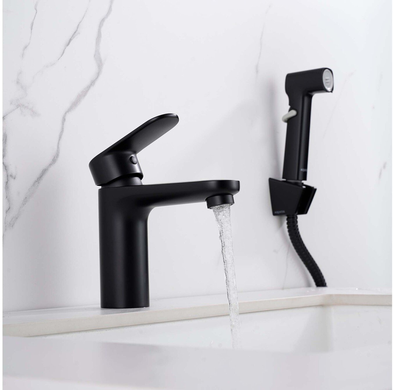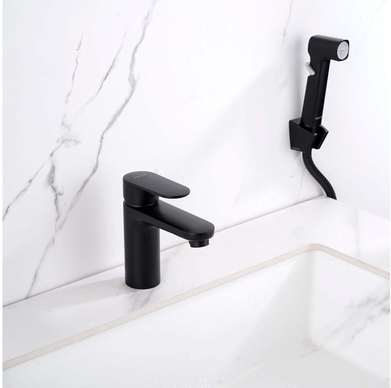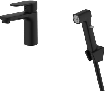 - Смеситель для раковины AQUATEK НИКА AQ1812MB с гигиеническим душем, матовый черный