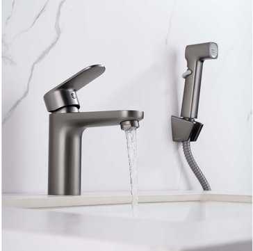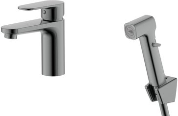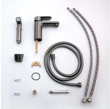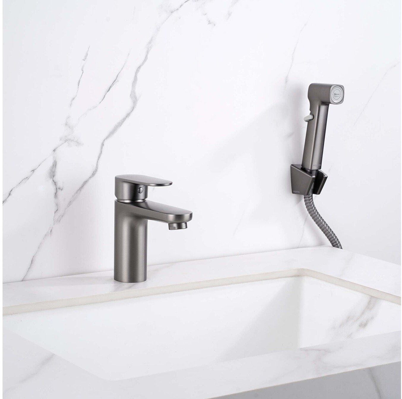 - Смеситель для раковины AQUATEK НИКА AQ1812BGM с гигиеническим душем, оружейная сталь