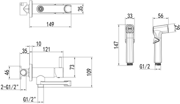 - Смеситель встраиваемый с гигиеническим душем AQUATEK НИКА AQ1819BGM, оружейная сталь