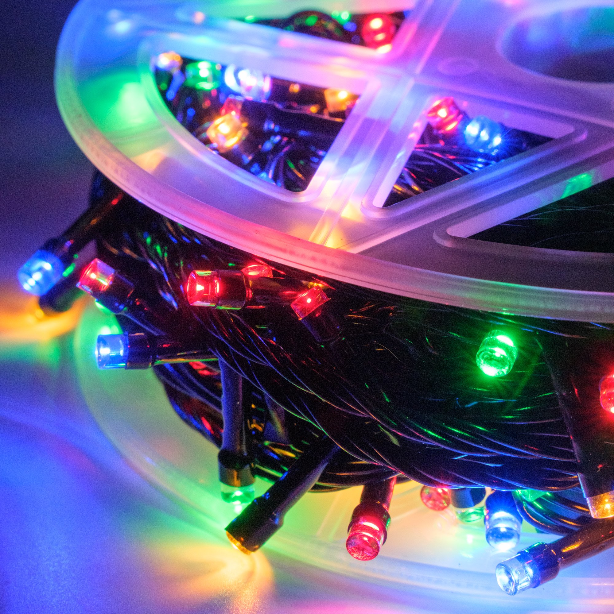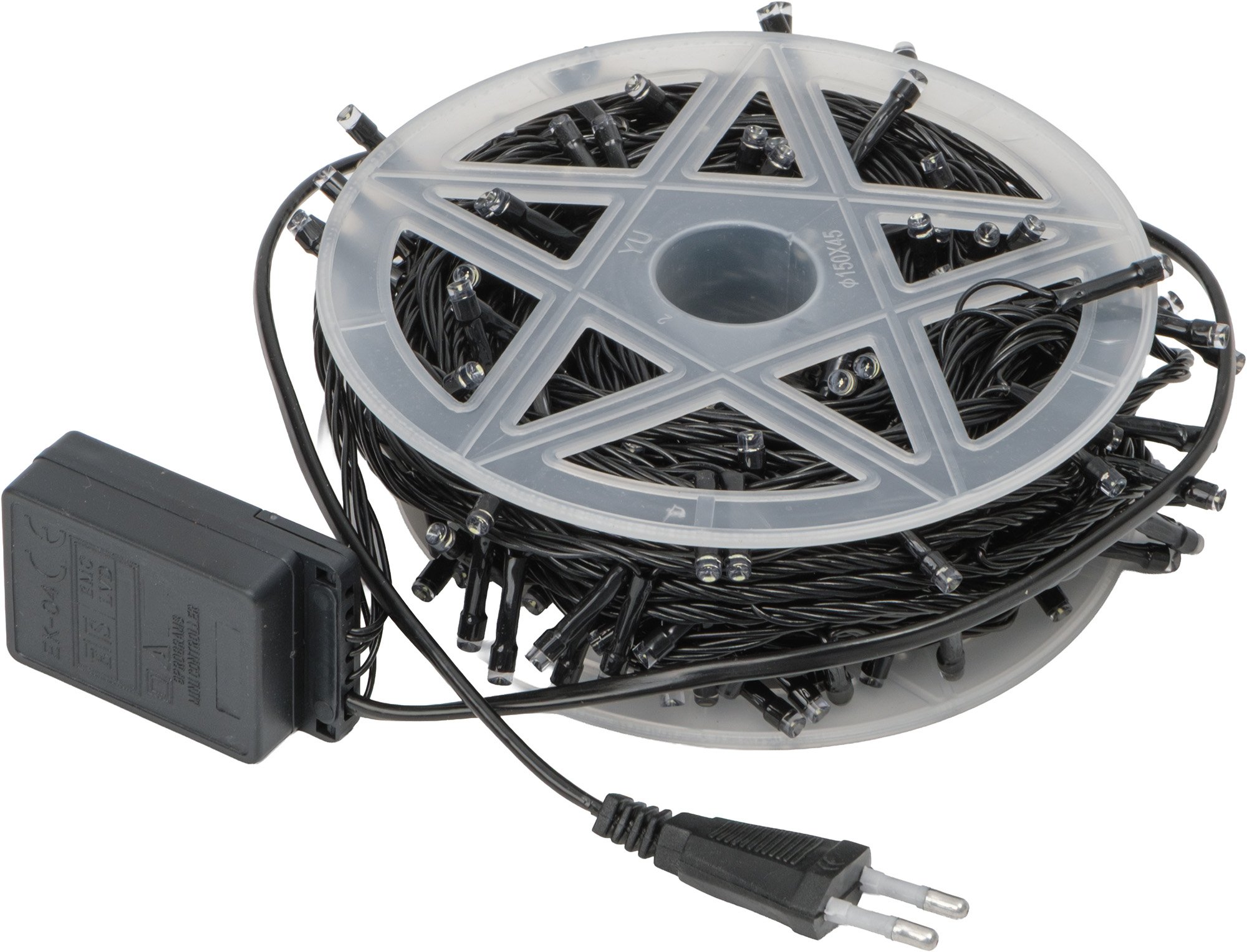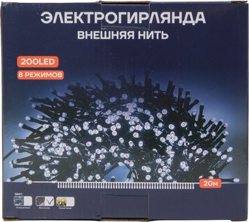 - Электрогирлянда внешняя Нить 20м 200LED IP44, мультиколор, контролер, с коннектором, черный кабель