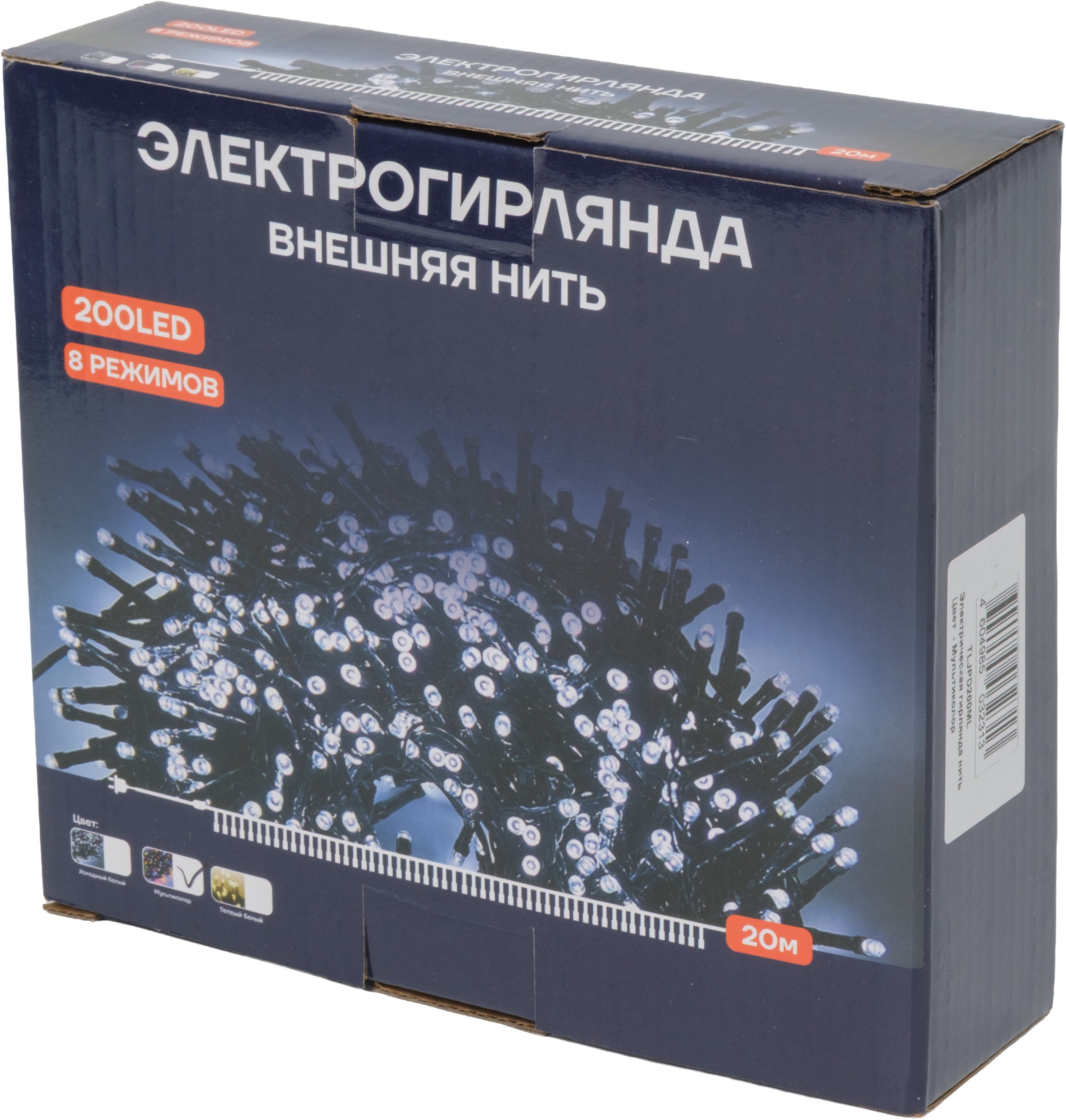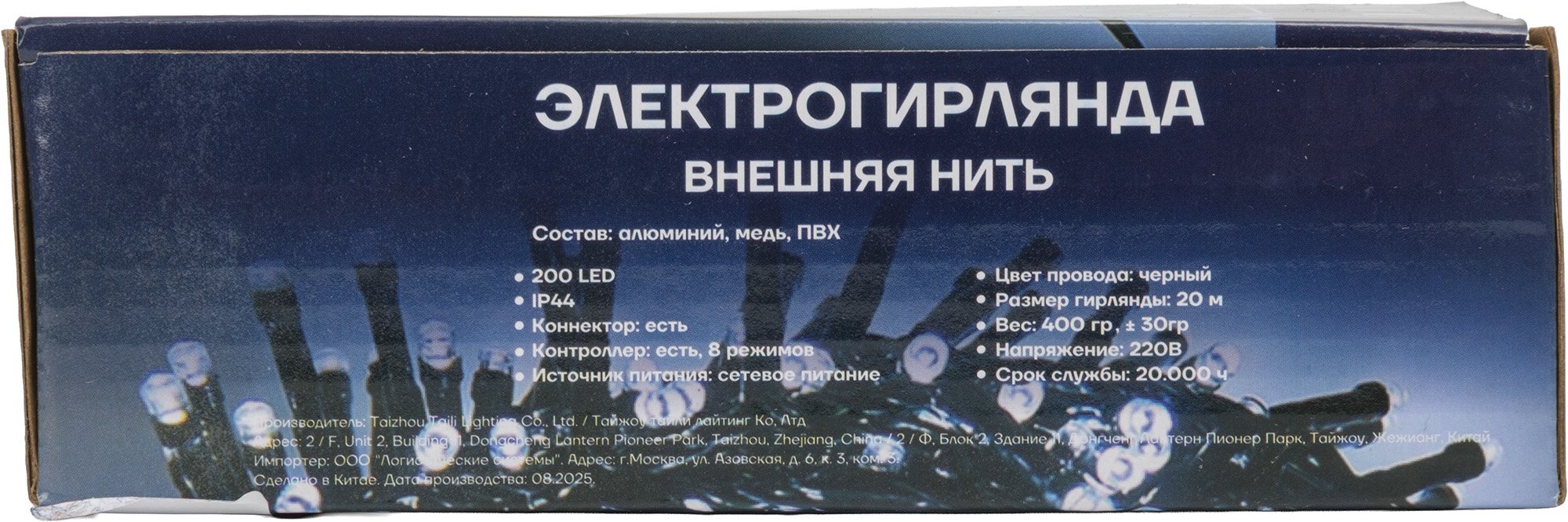 Превратите любое пространство в центр новогоднего торжества с мощной внешней гирляндой «Нить»! Длина 20 м, 200 насыщенных LED‑огней в мультиколор‑исполнении, удобный контроллер и коннектор для наращивания — всё, что нужно для грандиозного праздничного оформления.