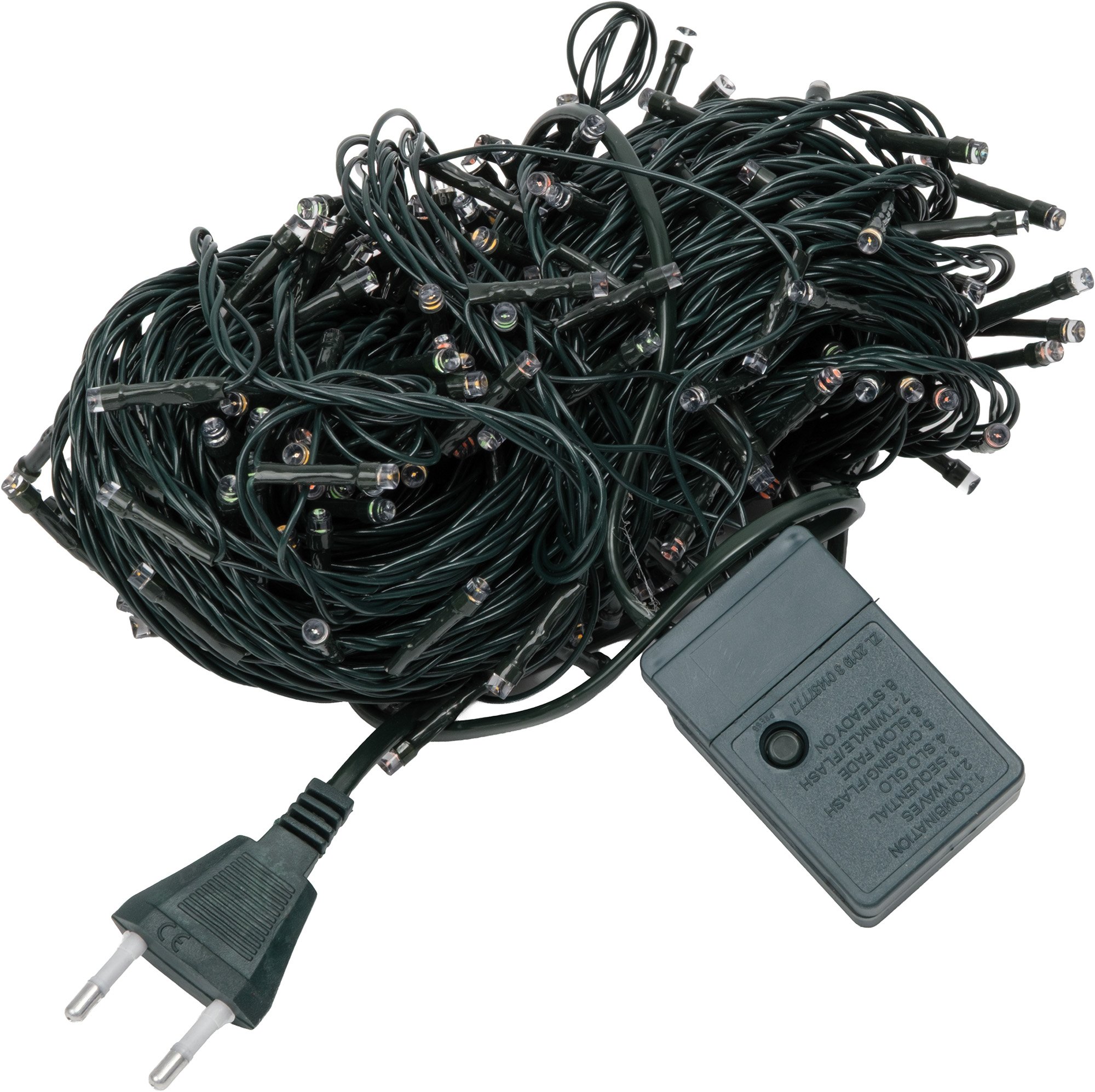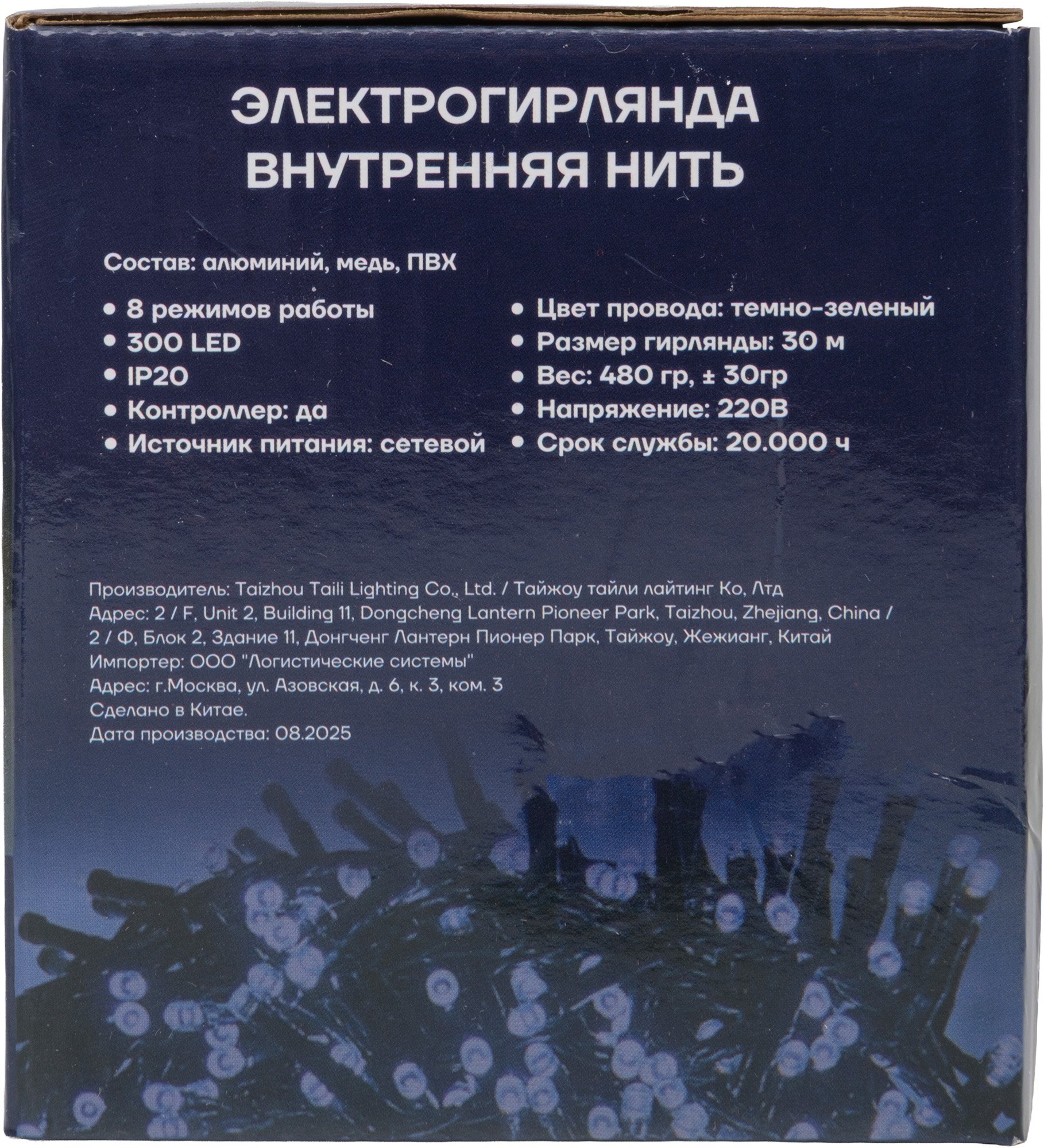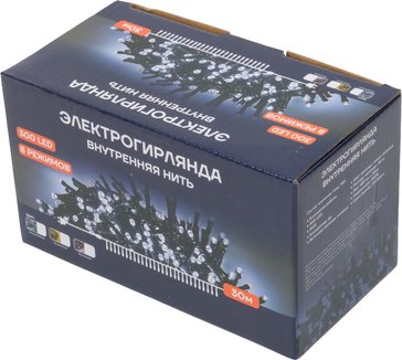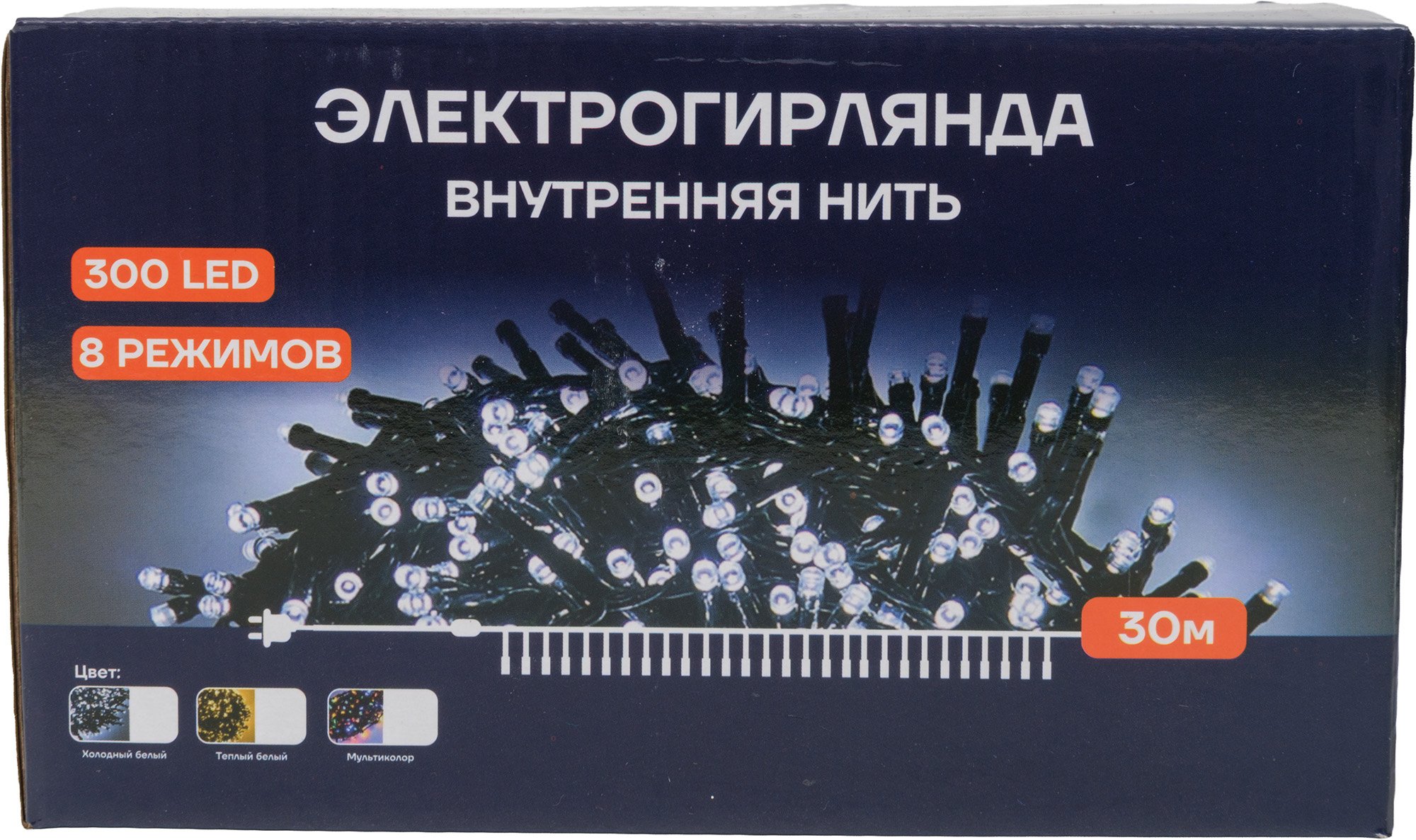 - Электрогирлянда внутренняя Нить 30м 300LED, мультиколор, контролер 8 режимов, темно-зеленый кабель