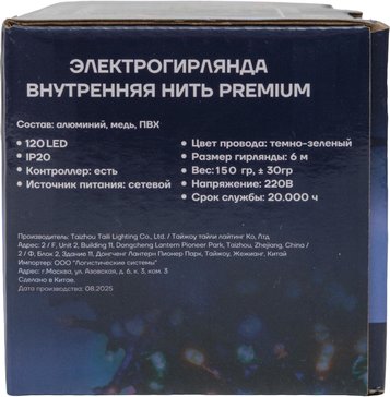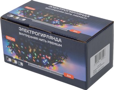 - Электрогирлянда внутренняя Нить Premium 6м 120 LED,холодный белый, fast flash,контролер, темно-зеленый кабель