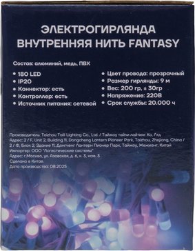 - Электрогирлянда внутренняя Нить Fantasy 9м 180LED, теплый белый, контролер, прозрачный кабель