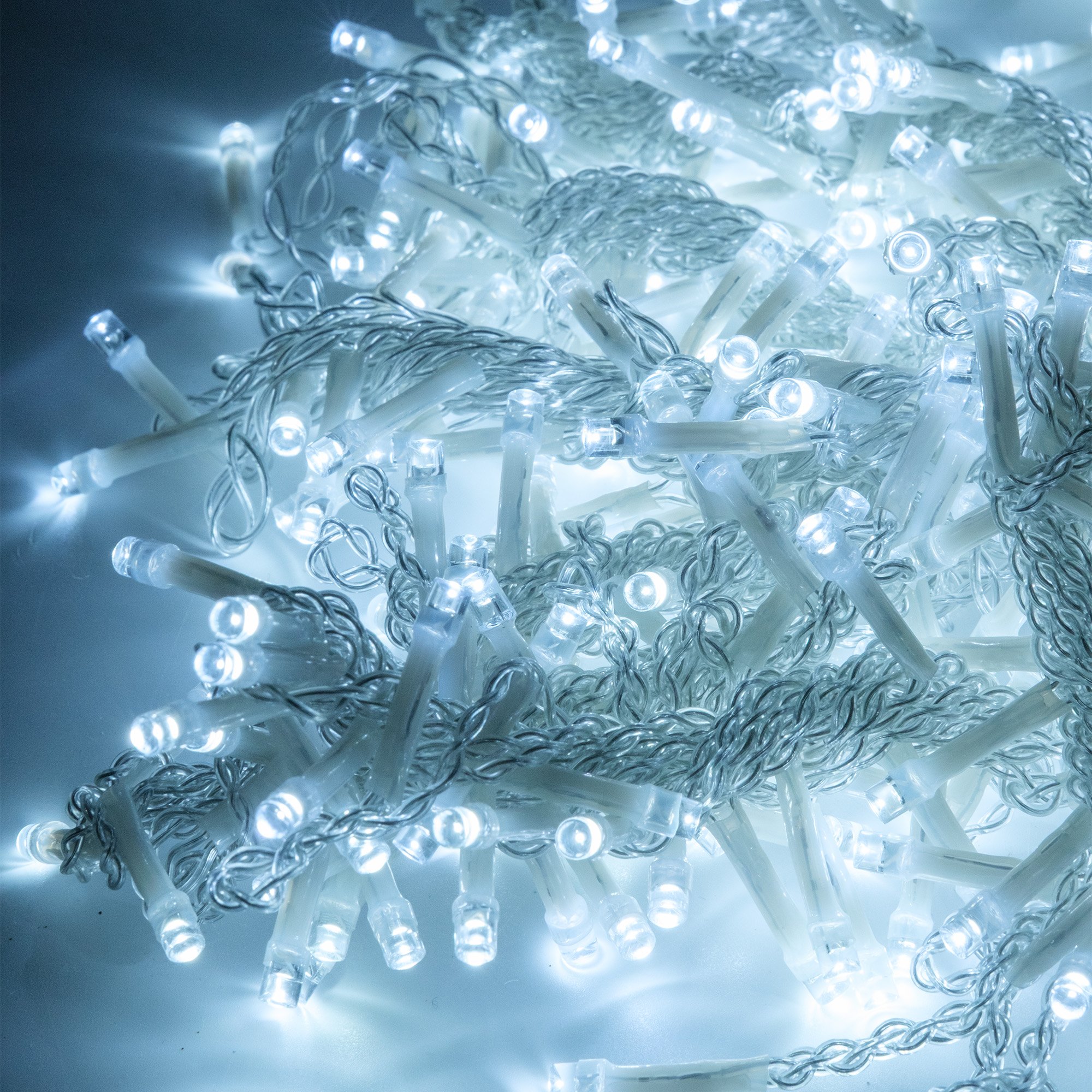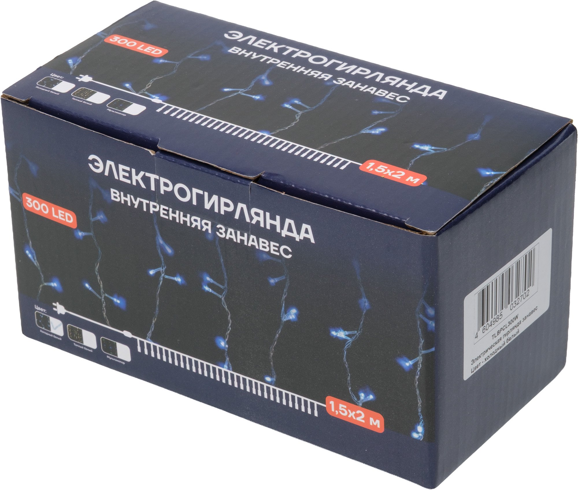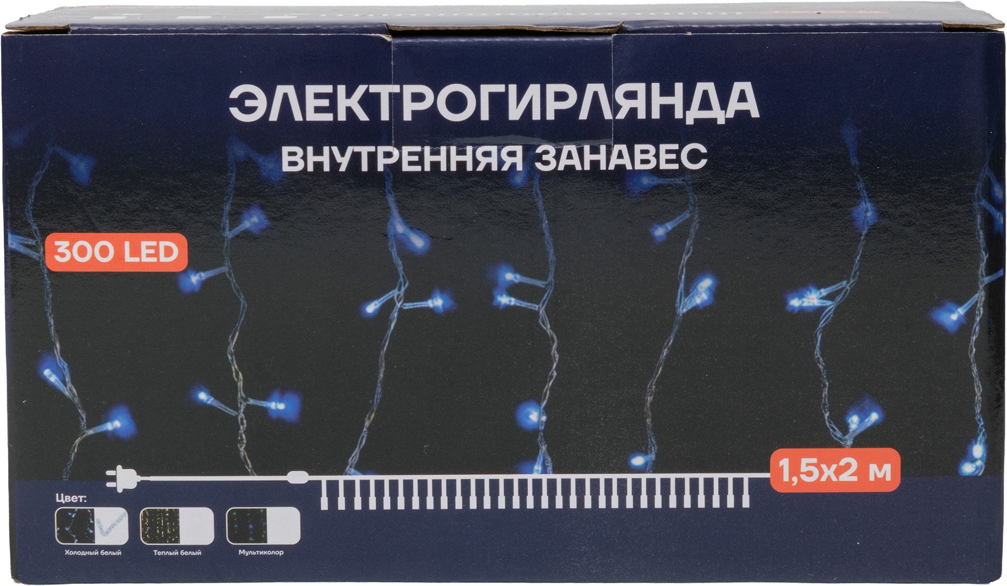 - Электрогирлянда внутренняя Занавес 1,5х2м 300LED, холодный белый, контролер, прозрачный кабель