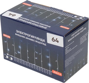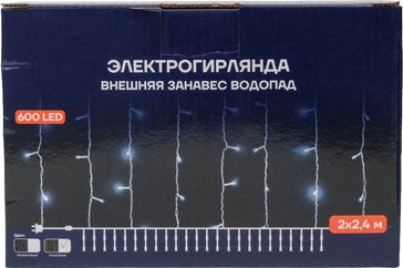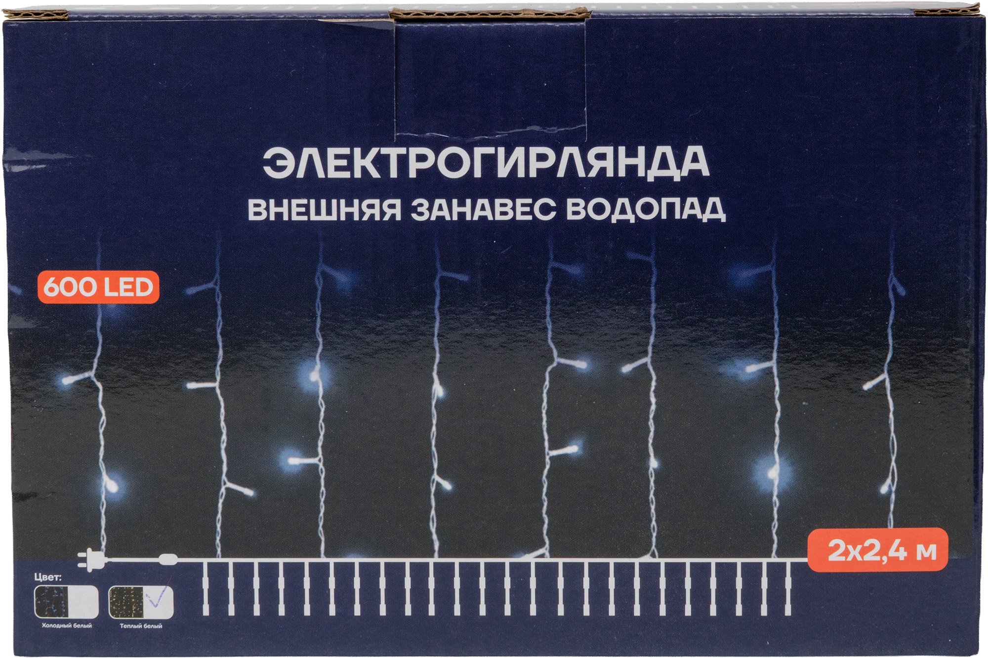 - Электрогирлянда внутренняя Занавес Водопад 2х2,4м 600LED, теплый белый, контролер, прозрачный кабель