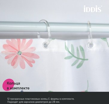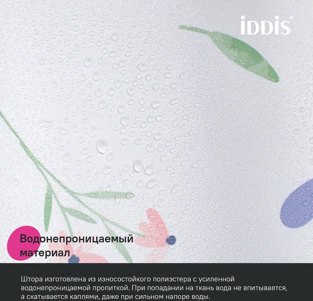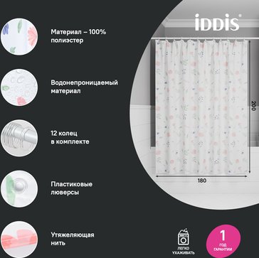 - Штора для ванной IDDIS 200x180см BF01P18i11 Полиэстер белый