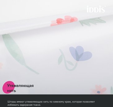 • Штора имеет утяжеляющую нить по нижнему краю, которая позволяет избежать задирания ткани.