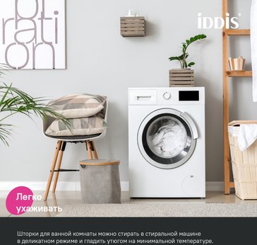 • Легко ухаживать: шторку для ванной комнаты можно стирать в стиральной машине в деликатном режиме и гладить утюгом на минимальной температуре.