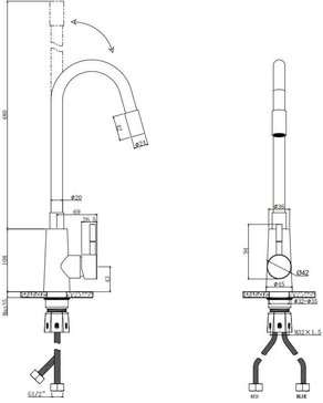 - Смеситель для кухни VODA K555B гибкий излив, черный