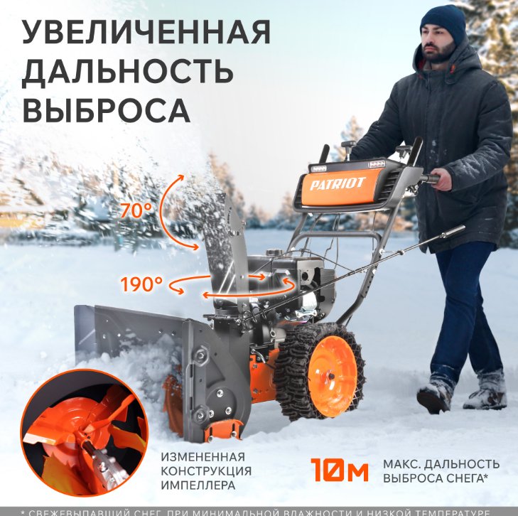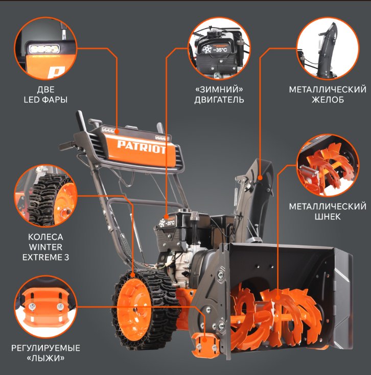- Снегоуборщик бензиновый ПАТРИОТ СИБИРЬ 57 7л.с.,ширина захвата 66см глубина обработки 42см