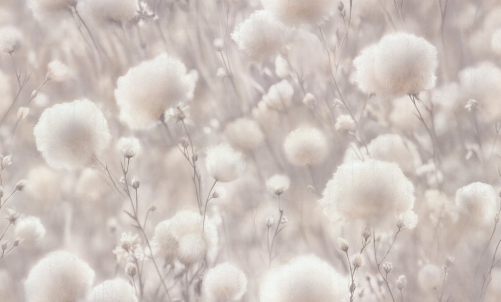 Представляем деликатную мягкость, вдохновлённую соцветиями хлопка в коллекции Cottonia. Нежные воздушные соцветия хлопка с эффектом фотопанно. Приятная фактура текстиля и фон с подгоном «0».