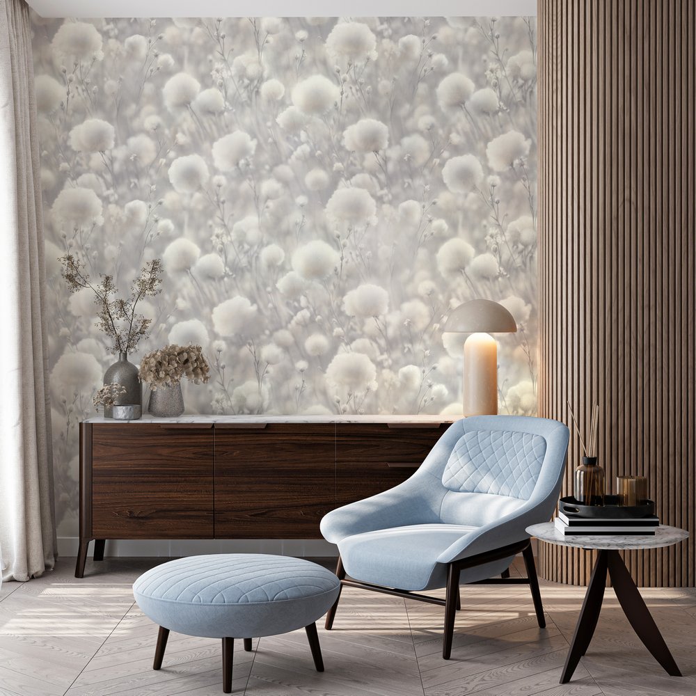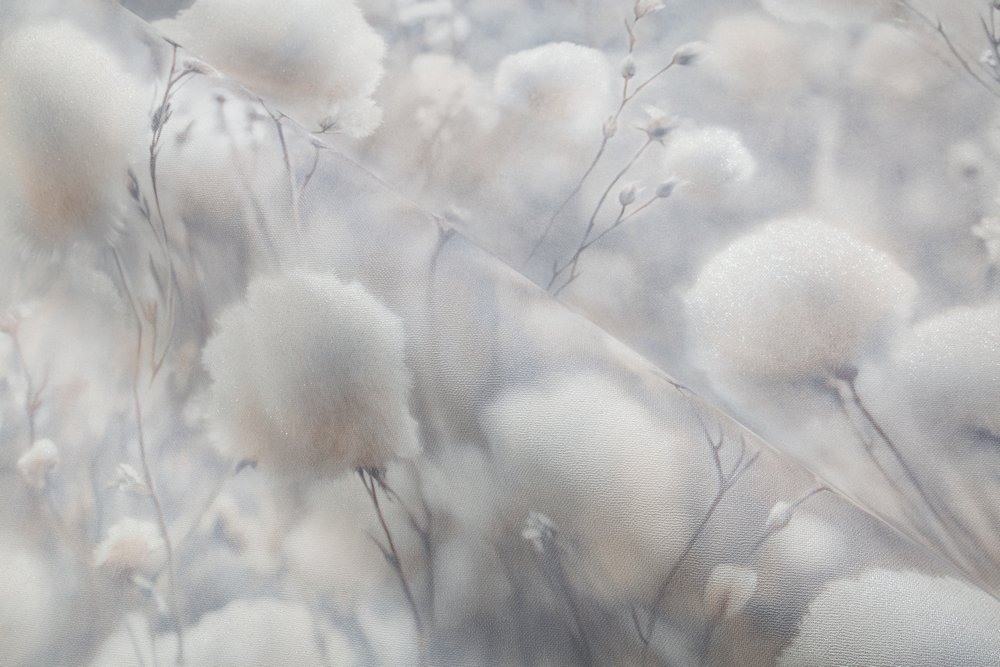 Представляем деликатную мягкость, вдохновлённую соцветиями хлопка в коллекции Cottonia. Нежные воздушные соцветия хлопка с эффектом фотопанно. Приятная фактура текстиля и фон с подгоном «0».