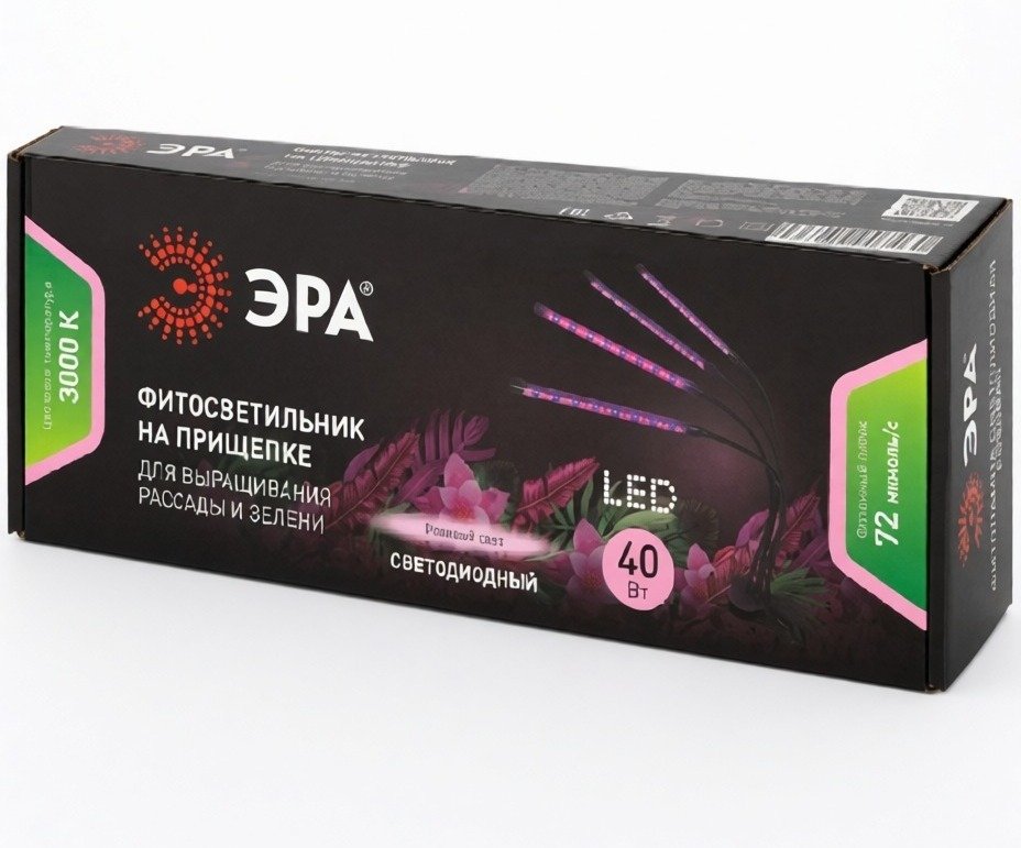 - Светильник для растений на прищепке ЭРА FITO-40W-АLED-RB красно-синего спектра 40 Вт