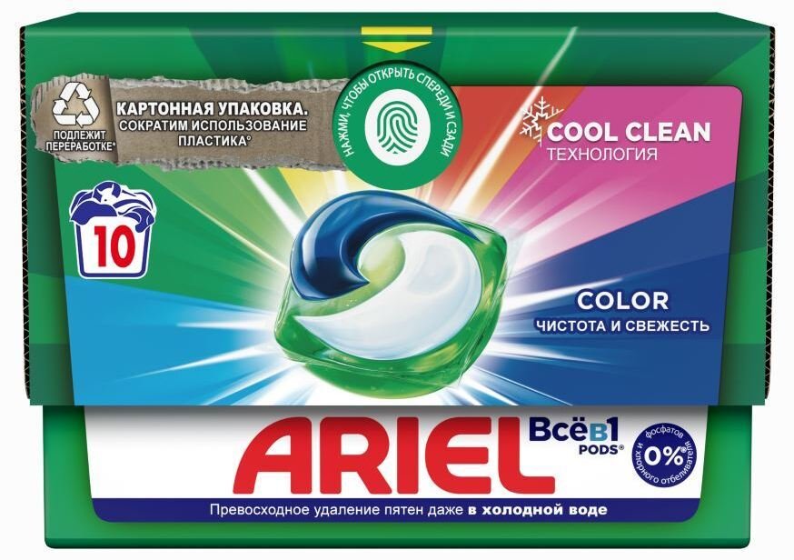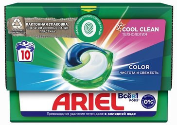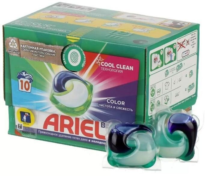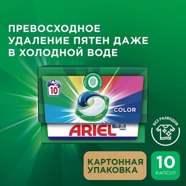 - Капсулы д/стирки Ariel 10шт 18,2г Color