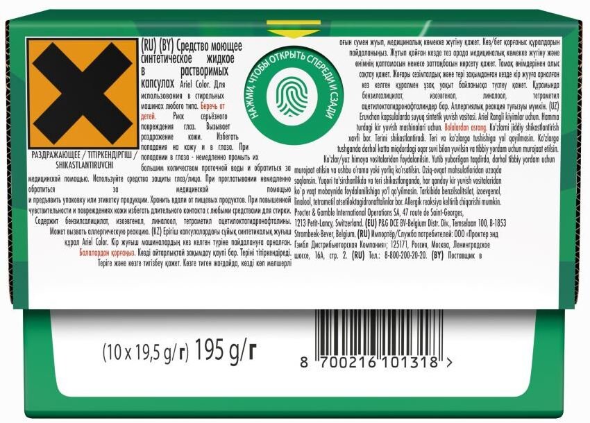 Капсулы для стирки Ariel Color подходят для стирки цветного и белого белья. Благодаря уникальному многосекционному дизайну, превосходное очищение еще никогда не было удобнее. Каждая капсула содержит комплекс мощных активных ингредиентов для эффективного отстирывания. Оболочка растворяется даже в холодной воде. Достаточно лишь добавить капсулу в барабан стиральной машины до загрузки белья. Ariel капсулы содержат высокую концентрацию очищающих веществ: одной капсулы хватит для стирки 4-5 кг белья.