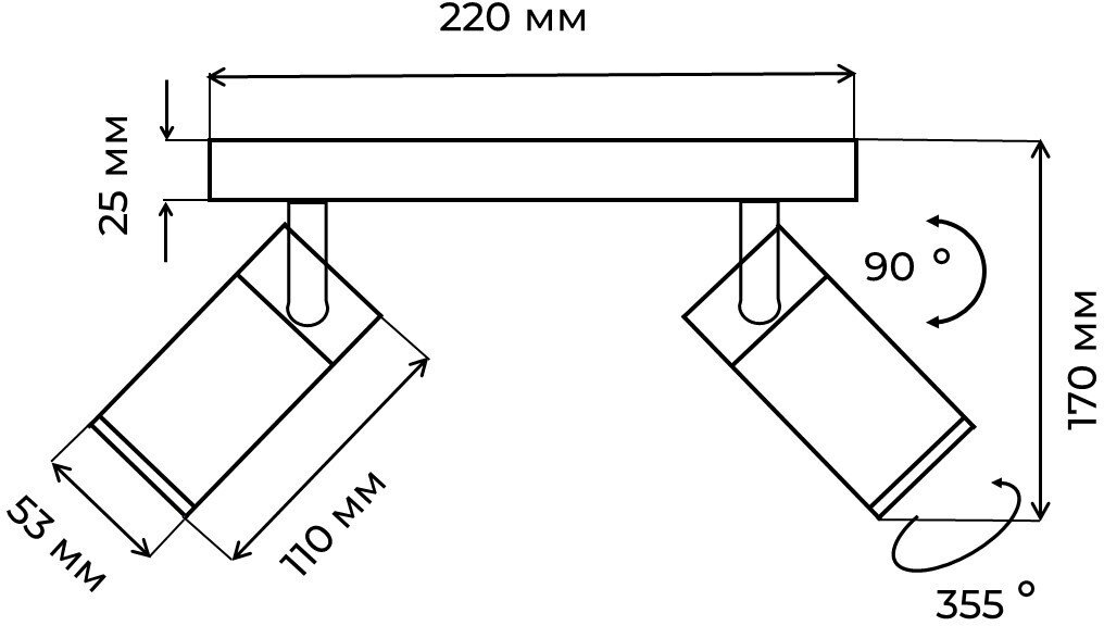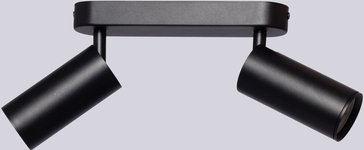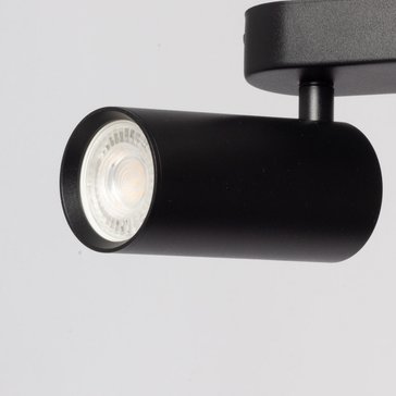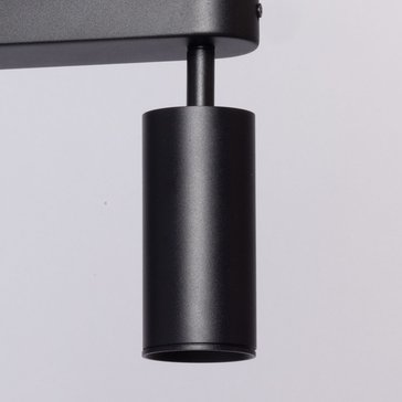 Минималистичный современный дизайн. Контрастный черный цвет делает светильник акцентом на потолке. Поворотные плафоны позволяют направлять световой поток в нужную сторону, что создает комфортное освещение. Заменяемые источники света удобны в эксплуатации.