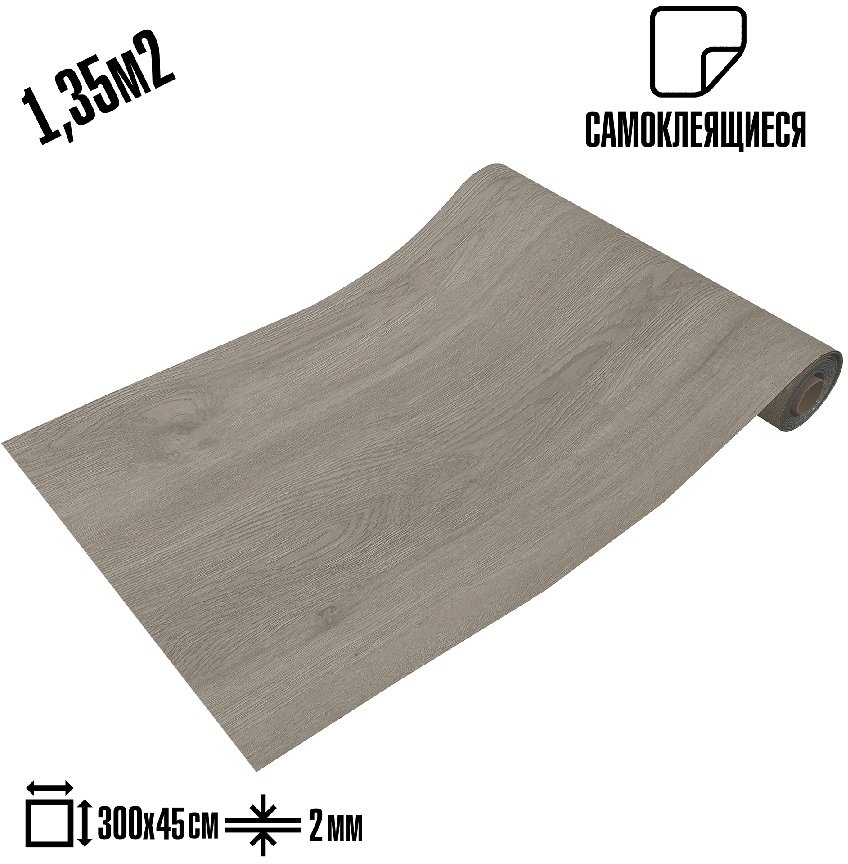- Плитка самоклеящаяся ПВХ LAKO DECOR Дуб Элегант 450х3000х1,5мм (рулон 1,35м²)