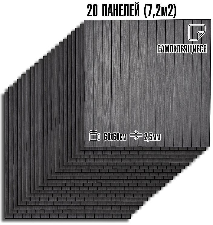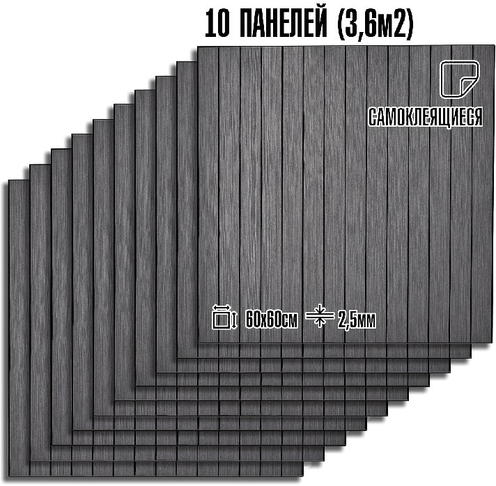 Панели самоклеящиеся: монтаж быстрый и чистый, без специальных навыков и инструментов. Материал влагостойкий и простой в уходе - достаточно протереть поверхность, чтобы вернуть ей первоначальный вид. Панели маскируют мелкие дефекты стен и слегка снижают уровень шума.