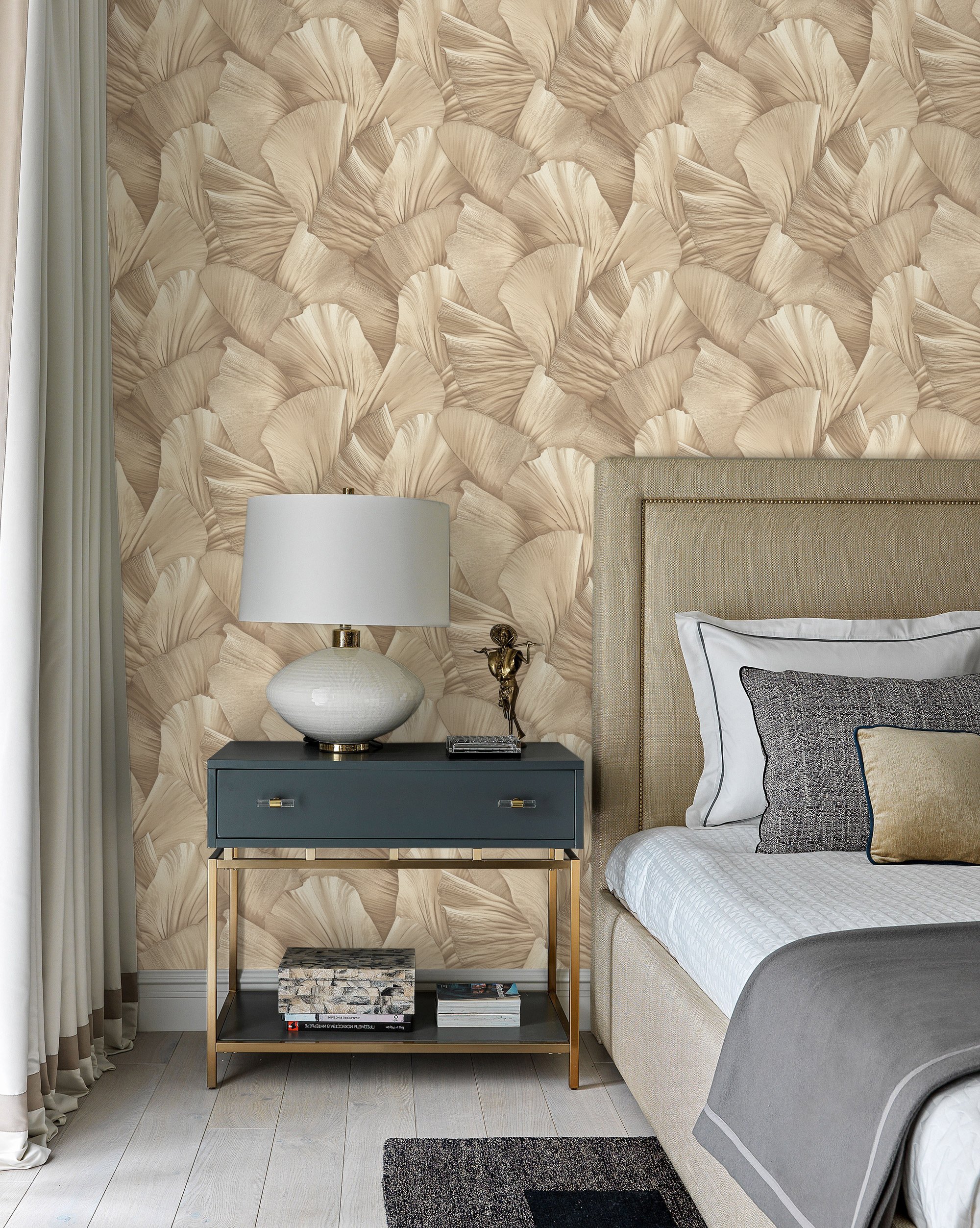 - Комбинируйте с фоновыми обоями из той же коллекции Serena для создания гармоничного, целостного интерьера. Фоновые обои подчеркнут выразительность мотива, не перегружая пространство.