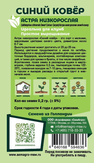 Представьте клумбу, утопающую в море насыщенных сине‑фиолетовых оттенков… С семенами астры «Синий ковёр» эта мечта станет реальностью! Этот сорт превратит любой уголок сада в живописное полотно, притягивающее взгляды до самых заморозков.