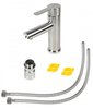Однозахватный смеситель для раковины Agger Easy с фиксированным изливом гармонично дополнит интерьер ванной комнаты в современном или традиционном стиле. Фирменный керамический картридж Agger и эргономичный рычаг делают легким управление напором и температурой воды. Корпус изделия изготовлен из высококачественной нержавеющей стали, не подверженной коррозии от длительного контакта с водой. Износостойкое покрытие в цвете матовый сатин, за которым очень просто ухаживать мягкой салфеткой, нанесено методом вакуумного напыления. Встроенный аэратор экономит воду и, обогащая струю воздухом, делает ее мягкой без брызг. Гибкая подводка 50 см.
