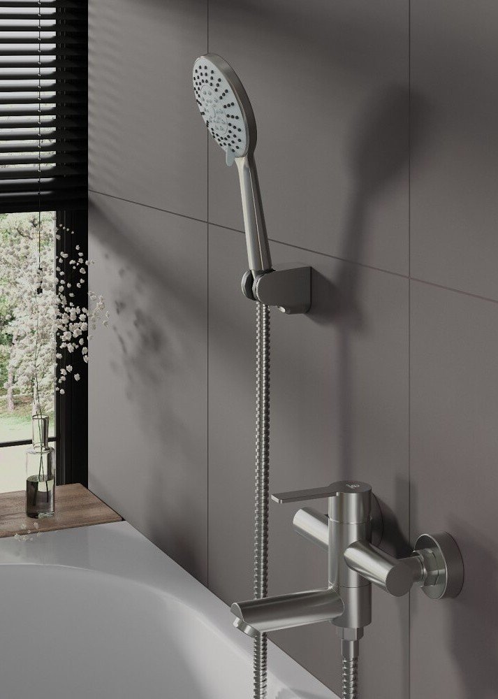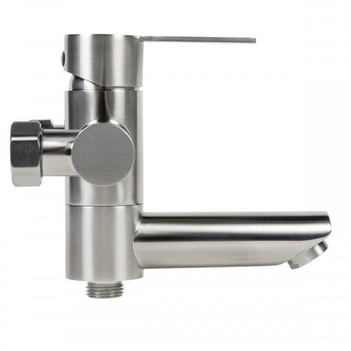 Однозахватный смеситель для ванны/душа с поворотным изливом и душевым набором Agger Easy украсит современный интерьер ванной комнаты. Корпус изделия изготовлен из высококачественной нержавеющей стали, не подверженной коррозии от длительного контакта с водой. Фирменный картридж Agger делает лёгким управление напором и температурой воды, а поворотный излив переключит её направление с излива на душ даже при низком давлении. Износостойкое покрытие в цвете матовый сатин нанесено по технологии вакуумного напыления (PVD), на нем незаметны разводы от высохшей воды и отпечатки пальцев. Аэратор экономит воду и, обогащая струю воздухом, делает её мягкой и без брызг. В комплекте душевой набор: ручной душ d125 мм, высота 260 мм (3 режима), душевой шланг 150 см в металлической оплетке (с защитой от перекручивания), настенный держатель лейки с регулировкой угла наклона. Стандарт подводки - 1/2. Гарантия 5 лет.