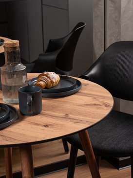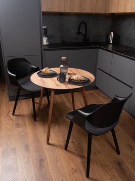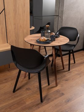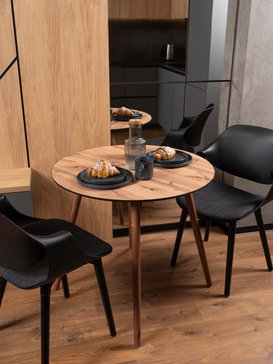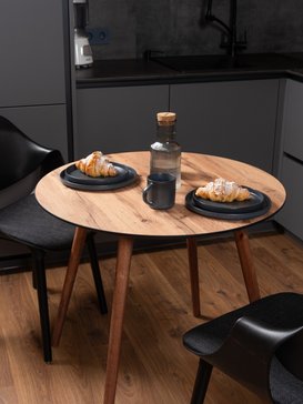 ЛДСП дуб вотан адаптировано к условиям городских квартир. Материал не рассыхается зимой при включенном отоплении и не разбухает летом во влажную погоду. Стол сохранит идеальную геометрию круглый год.