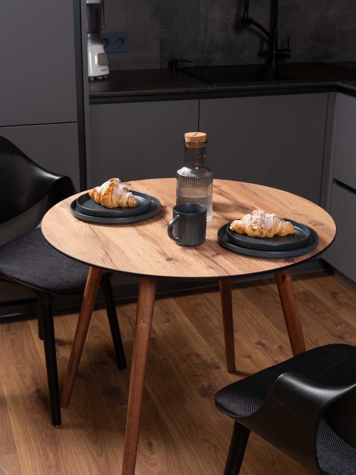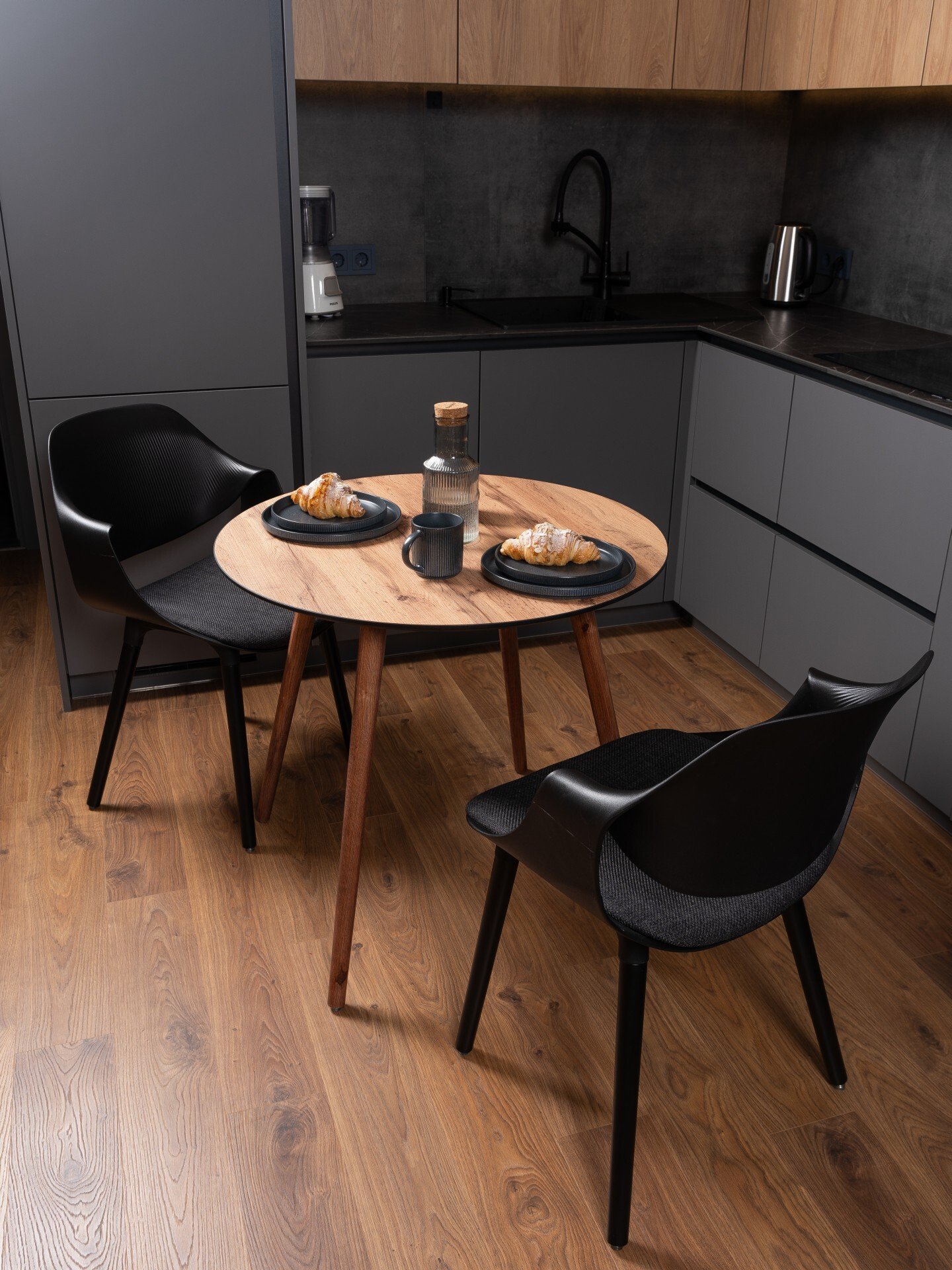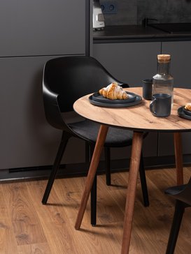 В отличие от белого глянца, на теплом древесном оттенке не видно отпечатков пальцев, крошек и водяных разводов. Стол дольше сохраняет опрятный вид в течение дня, что экономит ваше время на уборке.