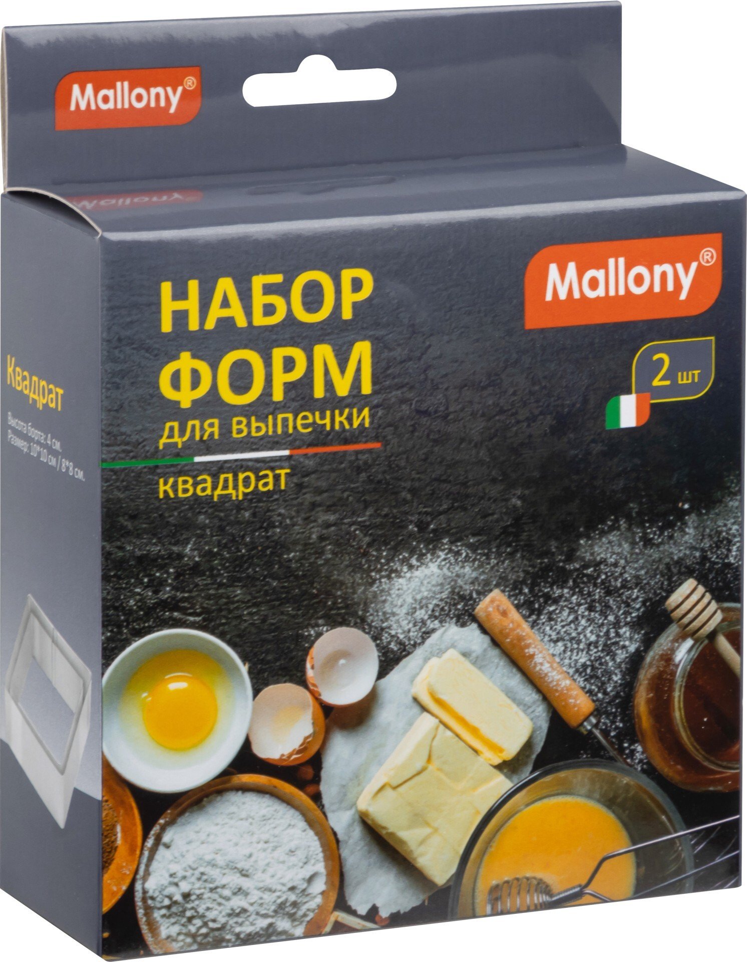 - Набор форм д/выпечки Mallony Torta квадрат 2шт 10х10х4см/8х8х4см нерж.сталь