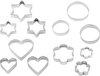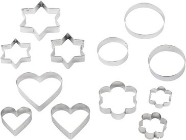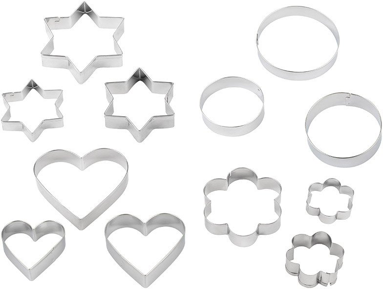 Высота борта: 1,3 см 4 дизайна, по 3 шт каждого дизайна. Цветок (3 шт): 5,9*5,5 см / 4,8*4,5 см / 3,9*3,5 см Круг (3 шт): 5,6 см / 4,8 см / 4 см Сердце (3 шт): 6*6 см / 5*5 см / 4*4 см Звезда (3 шт): 6*5 см / 5*4,2 см / 3,8*3,4 см Толщина стали: 0,23 мм Материал: нержавеющая сталь (430) Упаковка: блистер + цветная картонная подложка Формы для выпечки и вырубки теста используются для вырезания теста для печенья или пряников, создания фигурных бутербродов и канапе, для оригинального оформления сырной или мясной нарезки. В то же время формы подходят и для приготовления выпечки в духовке, помогая сделать ровное и аккуратное печенье. Один край форм закруглен для защиты рук от повреждений. Формы изготовлены из высококачественной нержавеющей стали. Материал не токсичен, не впитывает запахи, устойчив к высоким и низким температурам, подходит для мытья в посудомоечной машине. Перед первым применением рекомендуется помыть формы в теплой воде мягкой губкой с использованием моющего средства.