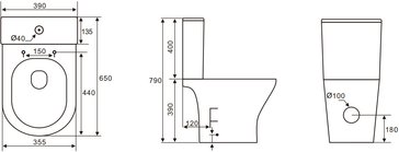 • Компактные размеры: Размеры унитаза (длина 65 см, ширина 39 см) делают его идеальным для установки в небольших ванных комнатах, при этом он сохраняет свою элегантность и функциональность.